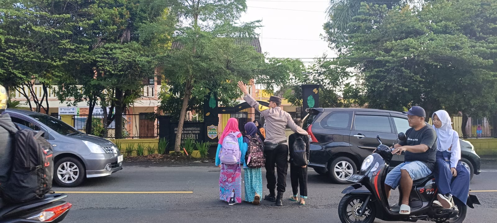 “Maka dari itu kami siagakan personel di area padat lalu lintas. Seperti jalan raya depan sekolah hingga perkantoran maupun persimpangan padat lalu lintas. Anggota hadir untuk mengatur lalu lintas, menyebrangkan anak sekolah dan orang tua dan pelayanan masyarakat lainnya, sehingga terciptanya kenyamanan dan keamanan di masyarakat,” kata Kompol Husen Sujana.
