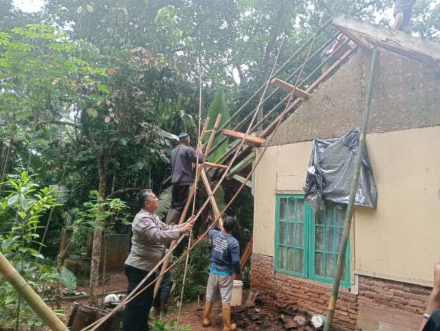 Humanis, Polsek Sukadana Polres Ciamis Ikut Bantu Perbaikan Rumah Warga