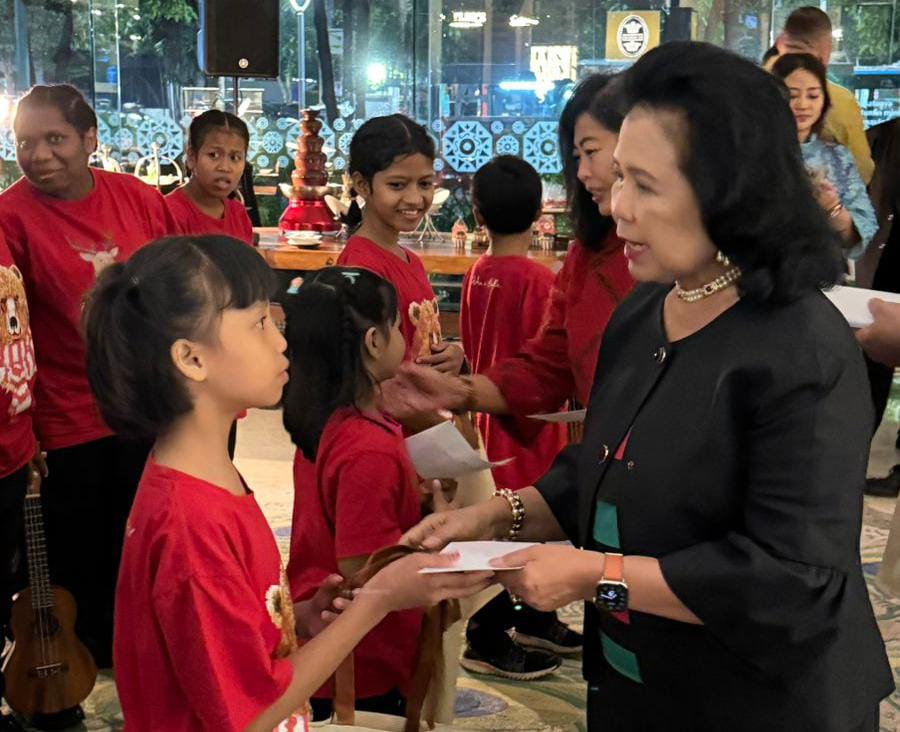 Prosesi penyalaan lampu pohon Natal berlangsung khidmat dan penuh keindahan, disempurnakan oleh penampilan anak-anak dari Panti Asuhan Pondok Taruna, Jakarta Timur, yang membawakan lagu-lagu Natal penuh sukacita.