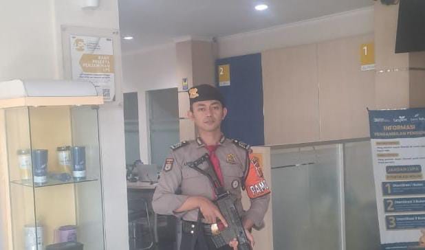Anggota yang bertugas yakni Brigadir Angga, dimana turut melakukan koordinasi dan komunikasi bersama petugas keamanan internal maupun pegawai perbankan. Ini juga bagian dari pada sinergitas Polri dengan elemen masyarakat terutama Mitra Kepolisian Satuan Pengamanan di salah satu objek vital.