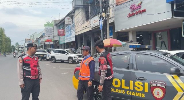 “Personel Sat Samapta berjalan kaki mendatangi setiap pedagang dan warga yang masih beraktifitas di kawasan Ruko Pasar Ciamis. Mereka hadir untuk memberikan pesan-pesan kamtibmas, terutama kejahatan jalanan. Seperti aksi premanisme berkedok Ormas dan Juru Parkir Liar serta pencurian barang berharga dengan modus pecah kaca,” ujar Kasat Samapta Polres Ciamis Polda Jabar Iptu Zezen Zaenal Mutaqin.