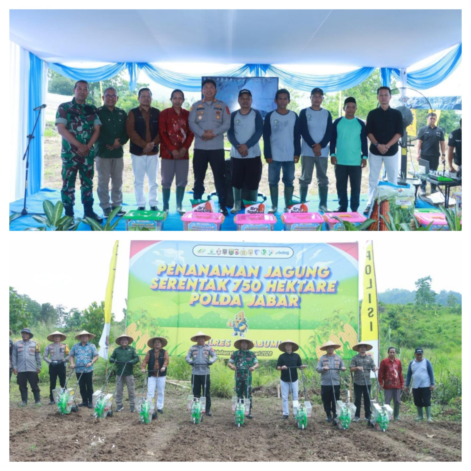 Polres Sukabumi terus menunjukkan komitmennya dalam mendukung program ketahanan pangan nasional. Salah satu bentuk nyata dukungan tersebut diwujudkan melalui kegiatan Penanaman Jagung Serentak 750 Hektare yang digagas oleh Polda Jawa Barat.
