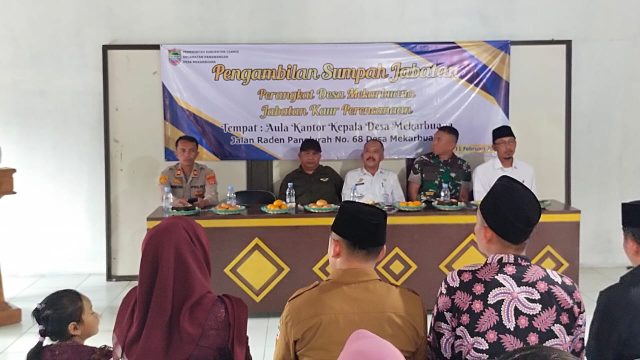 Rangkaian acara diawali dengan pembukaan dan menyanyikan lagu Indonesia Raya, dilanjutkan pembacaan ayat suci Al-Qur’an, pembacaan Surat Keputusan oleh Sekretaris Desa Mekarbuana, kemudian prosesi pengambilan sumpah dan pelantikan oleh Kepala Desa Mekarbuana. Kegiatan dilanjutkan dengan penandatanganan berita acara sumpah jabatan, penyerahan Surat Keputusan, sambutan Kepala Desa dan Camat Panawangan, pembacaan doa, serta pemberian ucapan selamat kepada perangkat desa yang baru dilantik.