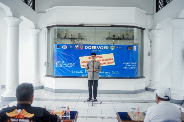 Bupati Ciamis, Herdiat Sunarya, secara resmi membuka kegiatan bakti sosial donor darah dan santunan bagi yatim piatu, penyandang thalasemia, serta jompo yang digelar di Joglo Timur Pendopo Kabupaten Ciamis, Jumat (13/02/2026). Kegiatan yang diinisiasi Komunitas Doervoer tersebut berlangsung penuh kehangatan dan dihadiri ratusan peserta serta relawan.