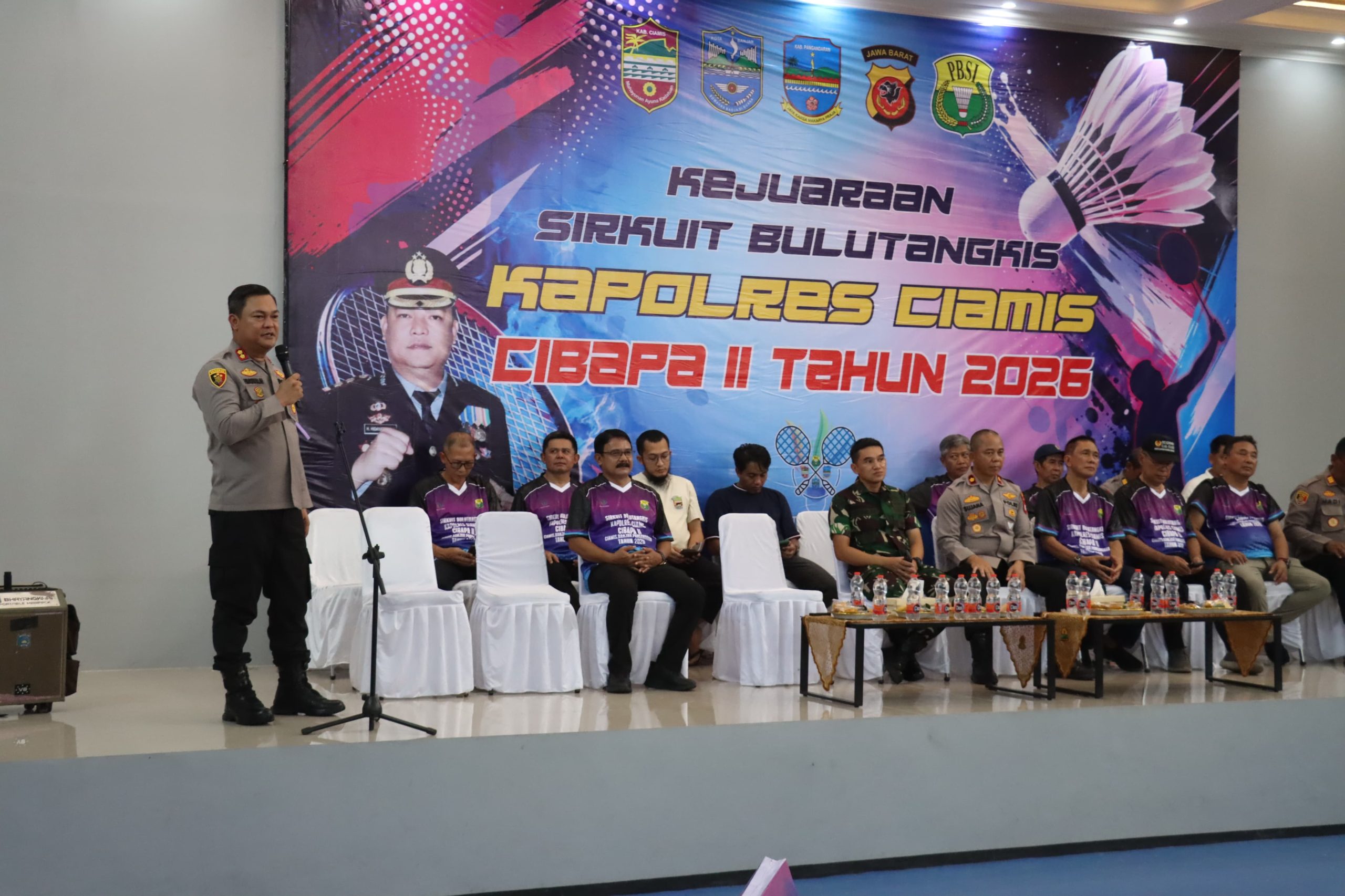 Dalam upaya mendukung pembinaan olahraga sekaligus mempererat kebersamaan antar daerah, Polres Ciamis menggelar pembukaan Kejuaraan Sirkuit Bulutangkis Kapolres Ciamis CIBAPA II tahun 2026 yang berlangsung di Gedung Sport Center Tahtya Dharaka Akpol 2005 Polres Ciamis, Kamis siang (02/04/2026).