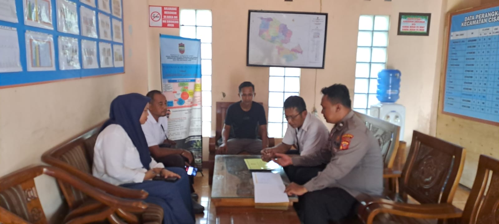 Seperti yang dilakukan Kanit Binmas Polsek Cisaga Polres Ciamis Polda Jabar Aipda Kusnendi bersama masyarakat yang mendatangi Perangkat Desa di Desa Wangunjaya, Kecamatan Cisaga, Kabupaten Ciamis, Jawa Barat, Kamis (2/4/2026).