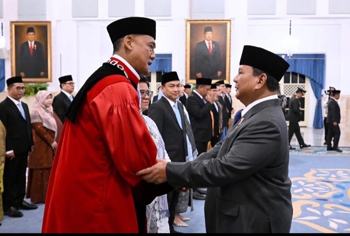 Presiden Prabowo Subianto secara resmi melantik Hakim Konstitusi, Ketua dan Anggota Ombudsman RI, serta Duta Besar Luar Biasa dan Berkuasa Penuh (LBBP) Republik Indonesia di Istana Kepresidenan, Jakarta, pada Jumat, 10 April 2026.