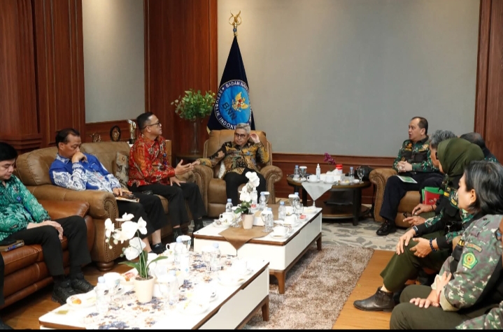 Sekretaris Utama Badan Narkotika Nasional Republik Indonesia (Sestama BNN RI), Tantan Sulistyana, mewakili Kepala BNN RI menerima audiensi Ketua Umum dan jajaran pengurus Himpunan Putra-Putri Keluarga Angkatan Darat (HIPAKAD) di Gedung BNN, Cawang, Jakarta Timur, pada Selasa (14/4).