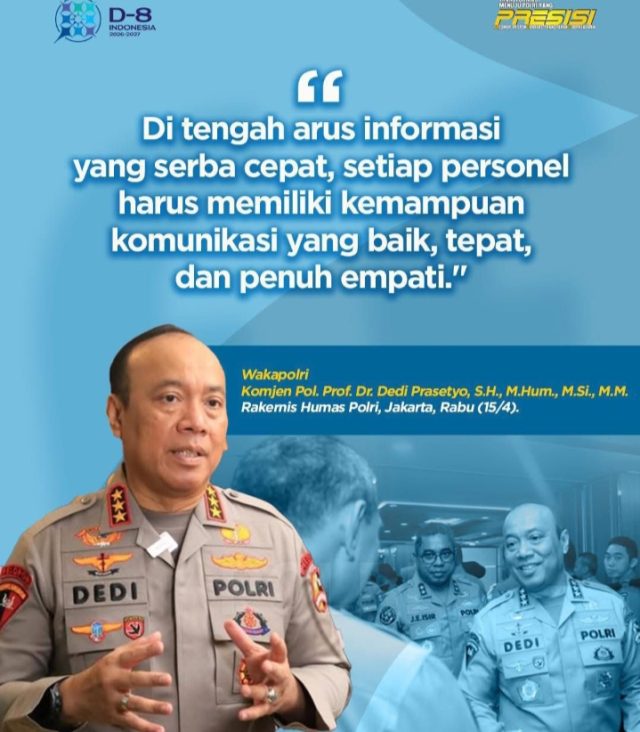 Wakapolri, Komjen Pol. Prof. Dr. Dedi Prasetyo, S.H., M.Hum., M.Si., M.M., menegaskan bahwa Humas Polri bukan hanya sekadar juru bicara.